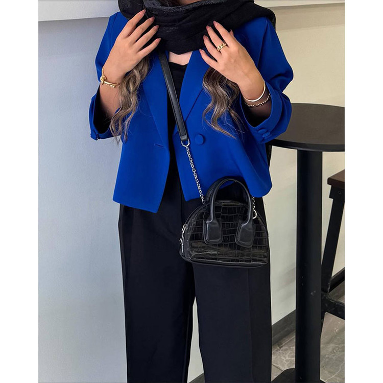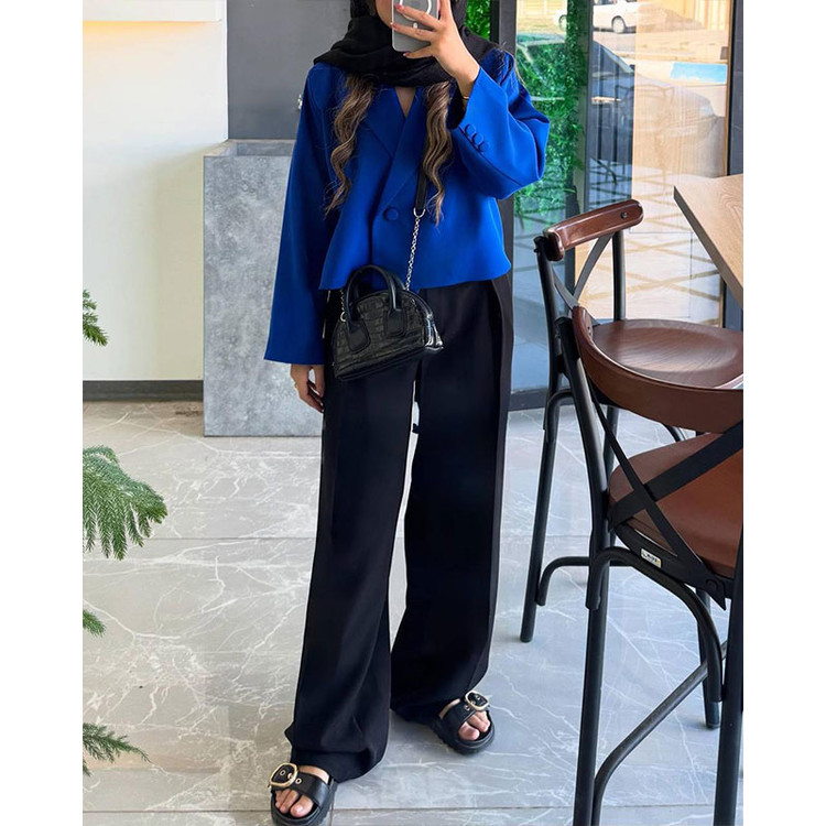 کراپ کت و شلوار تلما با طراحی شیک و پارچه کرپ لمینت شده، انتخابی ایدهآل برای استایلهای مدرن و راحت در تمام فصول است.