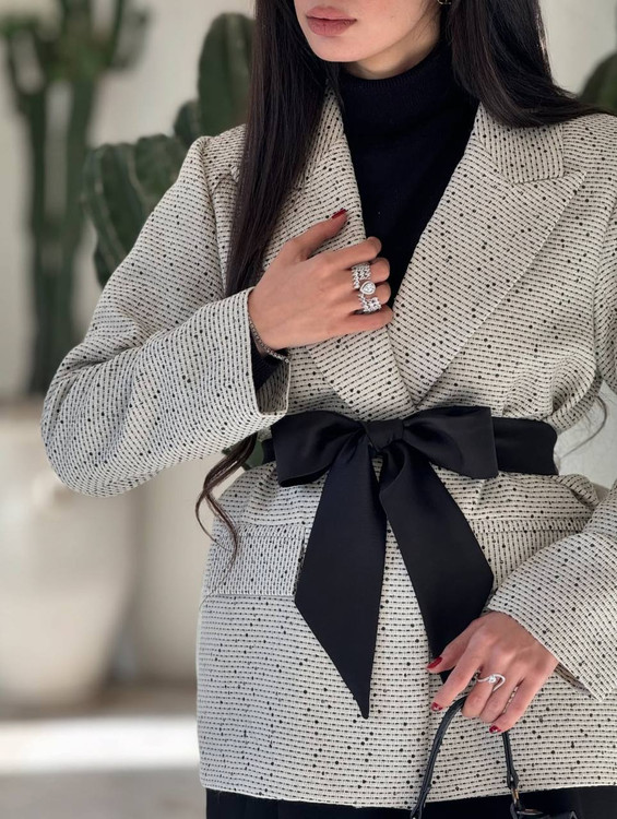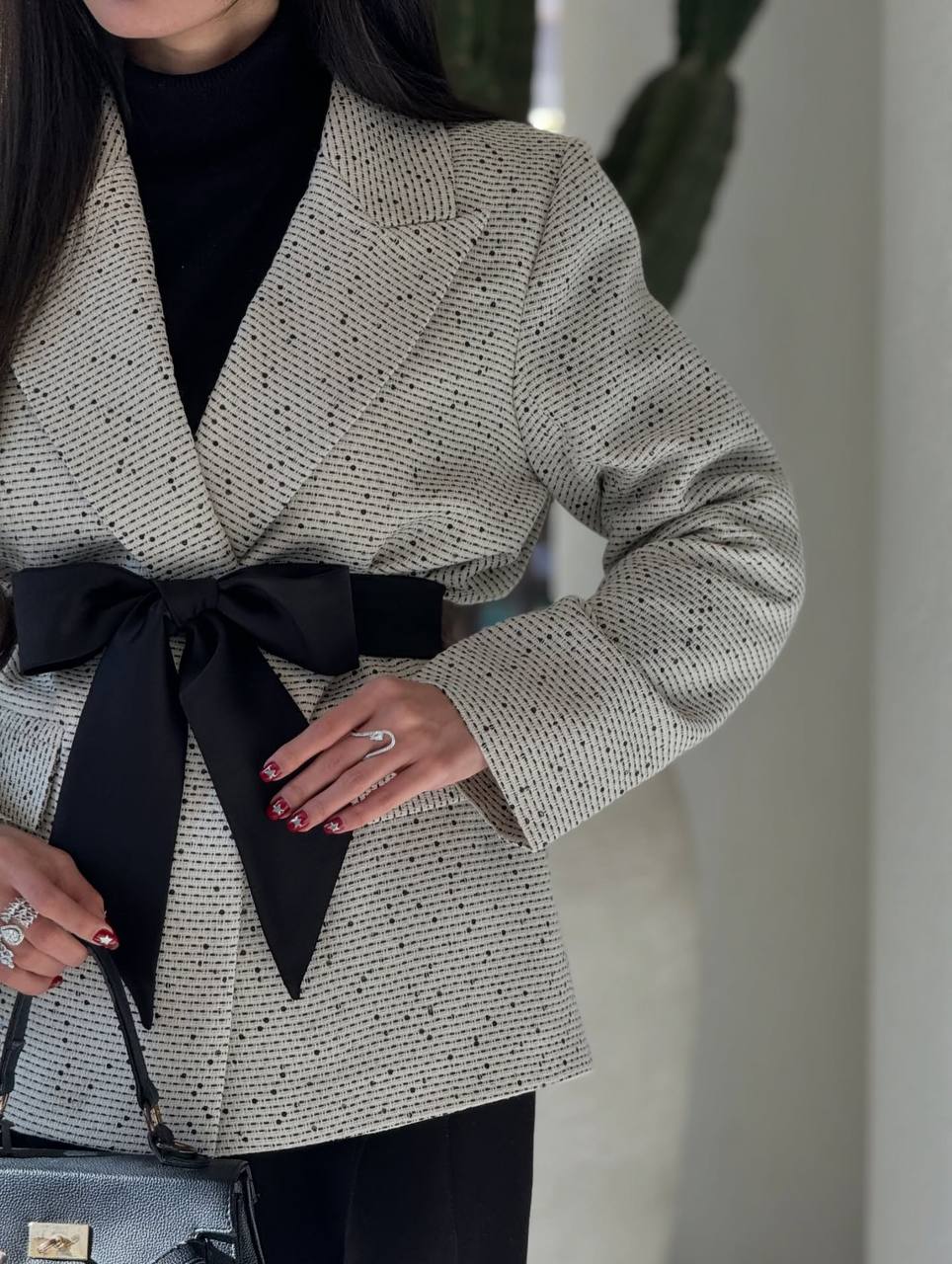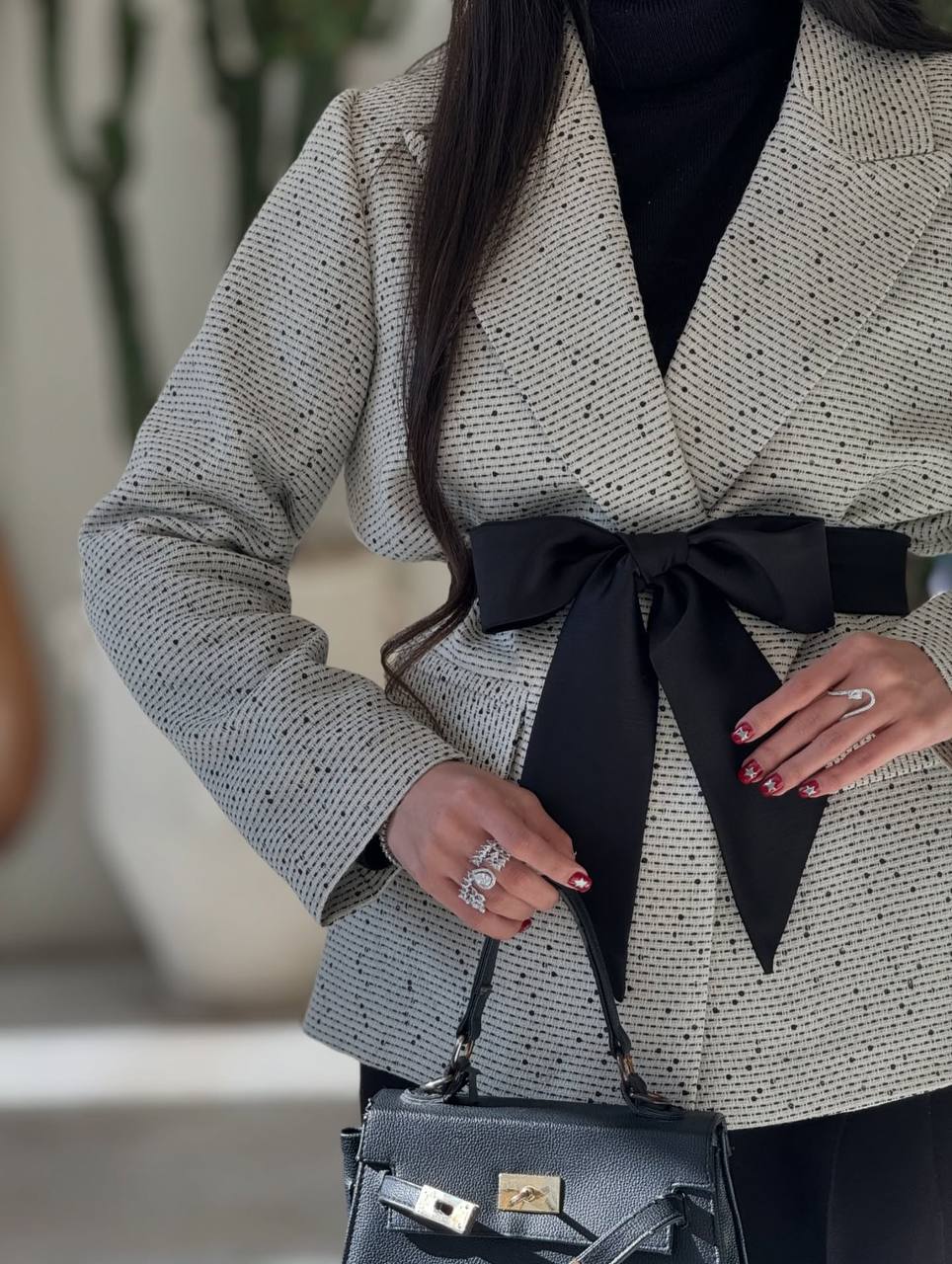 جزئیات ظاهری: دارای دو جیب / کمربند پاپیون